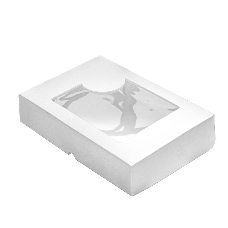 The boxes mod. JEFF 15.5x24x7 cm anonymous are perfect for pastry thanks to their rectangular shape and box opening. Made of microwave cardboard, they are suitable for food use and ideal for containing cakes, biscuits, sweets and pies. They are also suitable for shipping. Also available with elliptical, rectangular or Sicily-shaped plastic-coated upper window for viewing the contents.