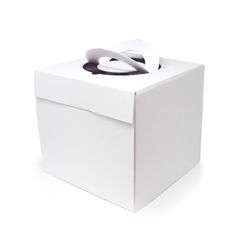 The cake box mod. SMILE 23x23x21 cm is the perfect solution to present and transport cakes and sweets. Equipped with lifting handles and plasticized window, it allows you to show the product inside the box. The product is printless.