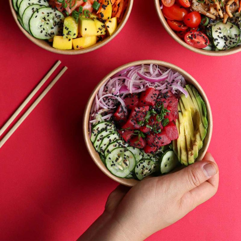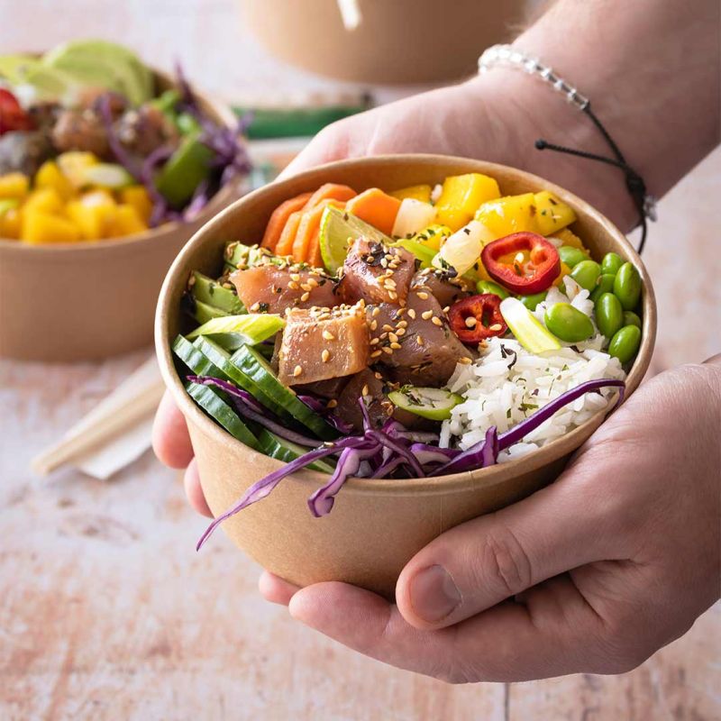 1000 ml neutral cardboard bowls, ideal for salads, poké, noodles, rice and soups. Made of polythene cardboard, they are resistant and practical. Accessorizable with PET lids for safe transport.