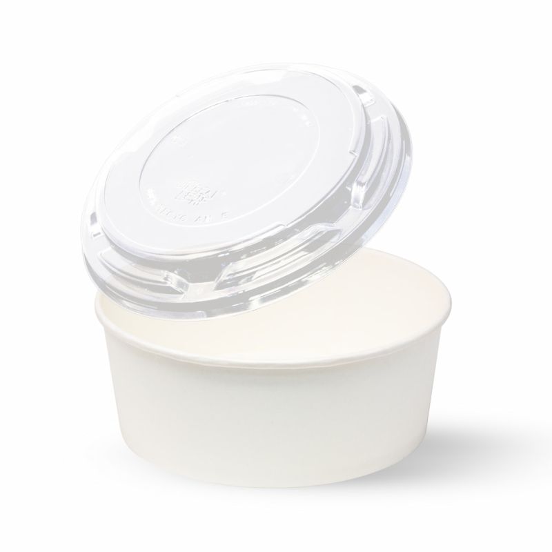 The 1100 ml white cardboard bowls Ø165x66 (Ø Base 145) are perfect for serving salads, poké, noodles, rice, soups and many other first courses or side dishes. Made from quality polythene cardstock, these bowls offer a large capacity and a comfortable shape to enjoy your favourite dishes. The bowls are neutral, without printing. In addition, the bowls can be accessorized with the transparent PET domed lid, which allows you to transport food safely and conveniently, while maintaining the freshness of the contents. Whether you run a restaurant, take-away or catering service, these cardboard bowls will be the ideal choice to meet the needs of your customers and present your dishes in an appealing way.