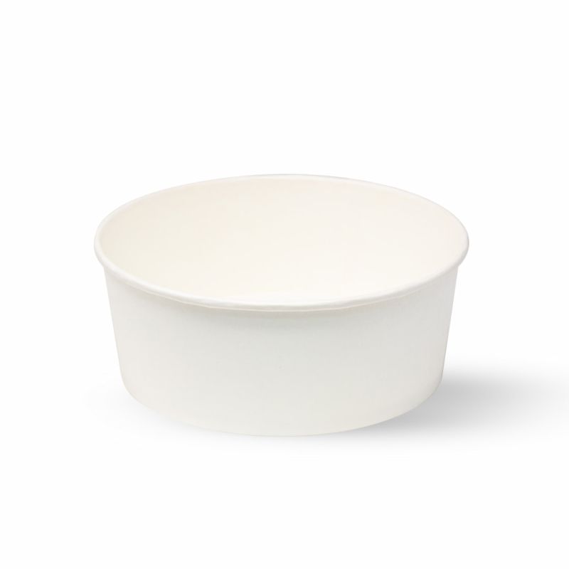 1100 ml white cardboard bowls, Ø165x66 (Ø Base 145) ideal for salads, poké, noodles, rice and soups. Neutral, unprinted and can be accessorised with a transparent PET convex lid.