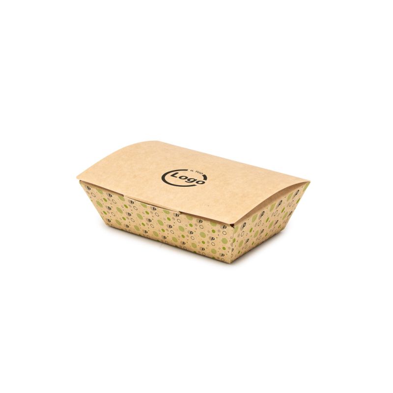 The boxes mod. B-BOX 6.5x10x4 cm can be customized up to 4 full-bottom colors and are perfect for foods such as fried foods, kebabs and fish. Made of paper with polythene interior, they guarantee maximum protection and elegant presentation of the products.
