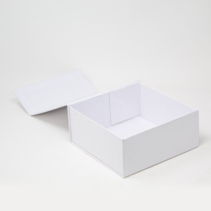 Luxury folding box with magnetic closure, made of 1.8–2 mm rigid cardboard. Available in white, digitally customizable on a lid. Quick assembly thanks to the double-sided adhesive already applied on the internal flaps. Very robust but practical in storage. Available formats listed below. Ideal for gift packaging, premium pastries, cosmetics, jewellery and fine objects.