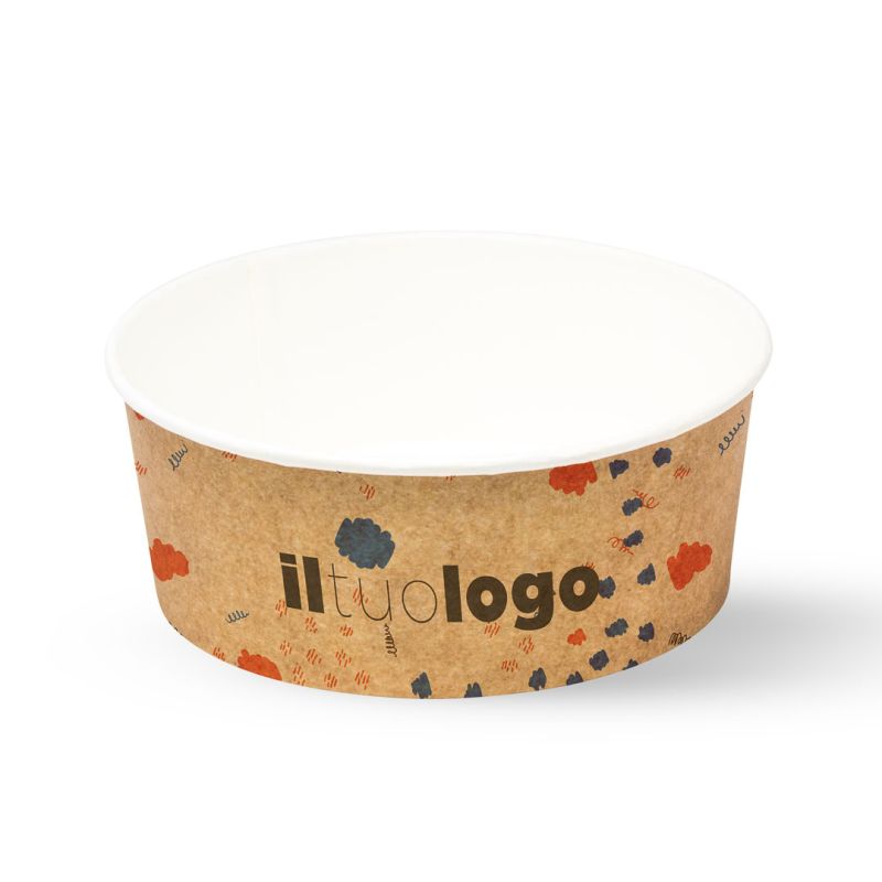 The 1100 ml white or havana cardboard bowls Ø165x66 (Ø Base 145) are perfect for serving salads, poké, noodles, rice, soups and many other first courses or side dishes. Made from quality polythene cardstock, these bowls offer a large capacity and a comfortable shape to enjoy your favourite dishes. You can customize them with your four-color graphics on the entire surface with a full bottom, adding a touch of professionalism and promoting your brand. In addition, the bowls can be accessorized with the transparent PET domed lid, which allows you to transport food safely and conveniently, while maintaining the freshness of the contents. Whether you run a restaurant, take-away or catering service, these cardboard bowls will be the ideal choice to meet the needs of your customers and present your dishes in an appealing way.