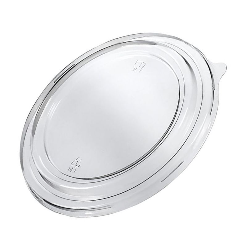 The 1300ml cardboard flat bowl lids are ideal for those looking for a eco-sostenibile and durable option for food packaging. These lids are made of high-quality cardstock, making them suitable for storing cold food. Unprinted and transparent in color, these lids are the ideal choice for those looking for a versatile and practical solution for their business. Due to their shape, these lids fit snugly into bowls and offer an airtight seal for the contents inside. Do not use for hot food.