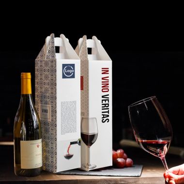 Bottle box mod. MAMBO measuring 10x10x34 cm is ideal for safely and conveniently transporting a bottle of wine or oil. Made of microwave cardboard, it is durable and easy to assemble. Equipped with a comfortable handle, it is ideal for long-distance transport. Available in a customized four-color version on the entire surface with the exception of full bottoms.