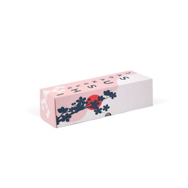 The box mod. MIKADO 22x7x6 cm with gold polythene interior is the perfect solution for transporting sweets such as macarons, biscuits, pies or sushi. This box is to be customized in four-color process on the entire surface with the graphics you prefer and offers the possibility of making windows to show the internal contents.