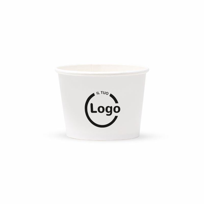 The 145 cc cardboard cups customized up to 3 colors on predefined area, are perfect for serving ice cream, puddings, mousses and desserts. Light and practical, they can be used in various contexts such as events, bars and ice cream parlors. The PE coating makes them suitable for contact with cold food or at room temperature, ensuring perfect preservation of the product. Thanks to their capacity, these cups can be useful not only for ice cream but also for serving aperitifs, finger food, olives, sauces and condiments.