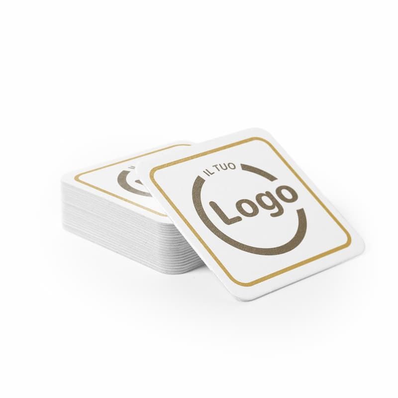 Customise your 580 gr. square 9.3x9.3 cm wood pulp coasters by printing your logo in full colour. Ideal for bars, restaurants and public places, they are made of durable cardboard and can be customized full bottom for greater visibility of your brand.
