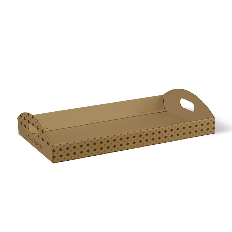 Las bandejas de comida con asas "mod. S" 38x25x4 cm son la solución perfecta para presentar y transportar sus productos gastronómicos. Hechas de cartón ecológico duradero y fácil de montar, estas bandejas son adecuadas para empacar y regalar regalos de Navidad como cestas de alimentos. Disponible en una versión personalizada de cuatro colores con la excepción de los fondos completos.