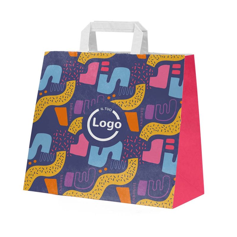Bolsa de compras de papel kraft Mínimo completo mod. EASY 32+20x37h cm - Personalizado 2 caras + fuelle