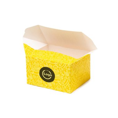 Cajas mod. DOBLE CLIC 10x10x8 cm personalizable hasta 4 colores de fondo completo. Cierre a presión. Perfecto para hamburguesas y comida rápida. Su diseño moderno y cierre seguro los convierten en el producto que marca tendencia para 2023.