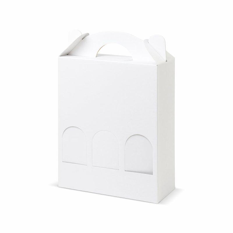 Caja de botellas mod. MAMBO con dimensiones 21,5x6,5x28,5 cm (incluida la altura del asa 33 cm) es ideal para transportar tres botellas de cerveza estándar de 33 cl de forma segura y práctica. Hecho de cartón para microondas, es duradero y fácil de montar. Equipado con un asa cómoda, es ideal para el transporte de larga distancia. Disponible en versión neutra, sin impresión.