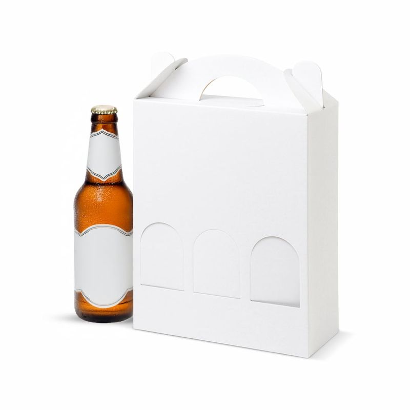 Fabricada en cartón para microondas, esta caja es resistente y duradera y adecuada para guardar tres botellas de cerveza estándar de 33cl.