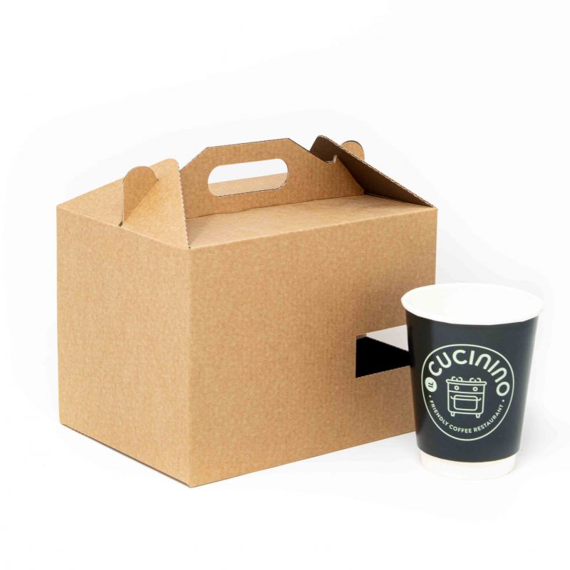 Las cajas mod. HAPPY FOOD en cartón para microondas con mango de 24x12x12,5 cm (mango excluido) blanco o habana son perfectos para restaurantes y comida rápida. Neutro, sin impresión para desayunos y comidas para llevar.