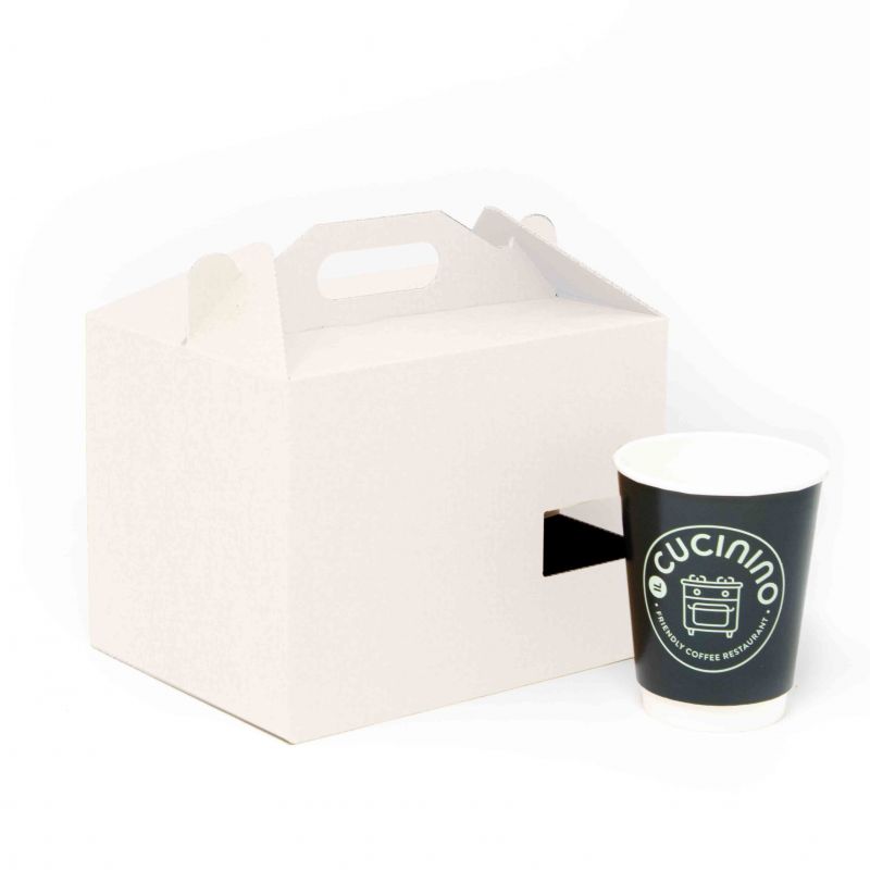 Las cajas mod. HAPPY FOOD en cartón para microondas con mango de 24x12x12,5 cm (mango excluido) blanco son perfectos para restaurantes, hamburgueserías y restaurantes de comida rápida.