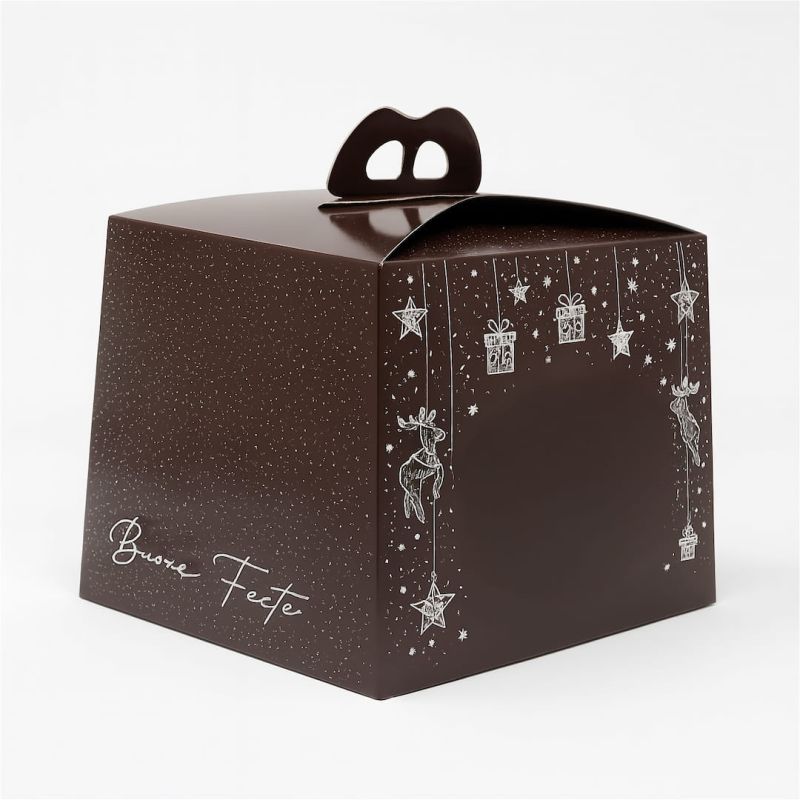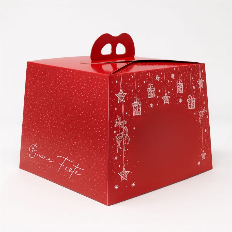El BOX MOD. BELL 25x25x18 cm – sin personalización es un envase elegante y funcional para el envasado de panettone artesanal de 1 kg, postres para ocasiones especiales y productos premium.