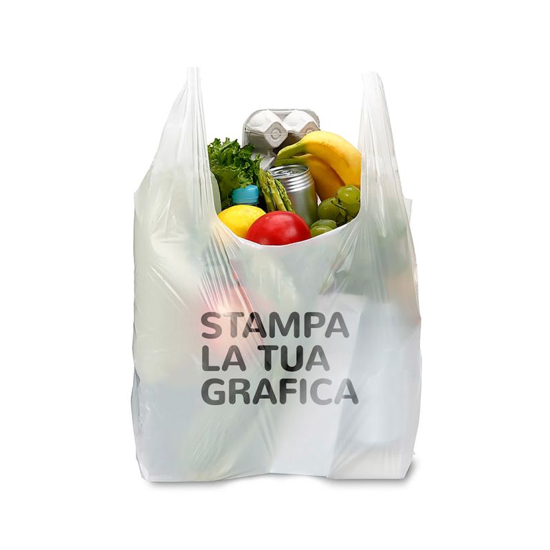 Nuestro shopper bio compostable en diferentes tamaños con asa personalizable de 1 color en ambos lados, es una opción ecológica y sostenibile para sus necesidades de embalaje y transporte.