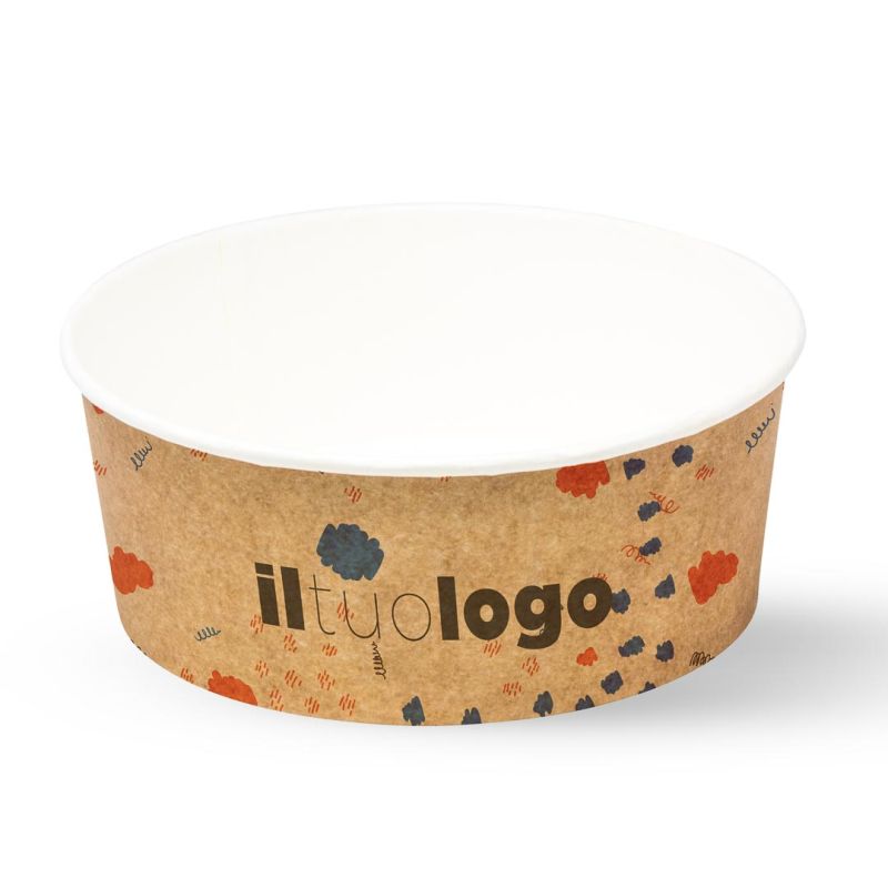 Los cuencos de cartón blanco / Havana de 1300 ml Ø186x67 (Ø Base 160) son perfectos para servir ensaladas, poké, fideos, arroces, sopas y muchos otros primeros platos o guarniciones. Fabricados con cartulina de polietileno de calidad , estos cuencos ofrecen una gran capacidad y una forma cómoda para disfrutar de tus platos favoritos. Puedes personalizarlos con tus gráficos de cuatro colores en toda la superficie con un fondo completo, agregando un toque de profesionalismo y promocionando tu marca. Además, los cuencos se pueden equipar con la tapa abovedada transparente de PET, que permite transportar los alimentos de forma segura y cómoda, manteniendo la frescura del contenido. Tanto si tienes un restaurante, una comida para llevar o un servicio de catering, estos cuencos de cartón serán la opción ideal para satisfacer las necesidades de tus clientes y presentar tus platos de forma atractiva.