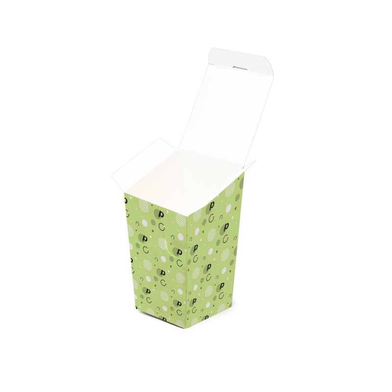 La cesta de polietileno FRIES BOX 6x6x12 cm con tapa resellable es ideal para servir frituras de una manera elegante y práctica. Personalizable hasta 4 colores de fondo completo, es perfecto para catering, comida rápida y gastronomía.