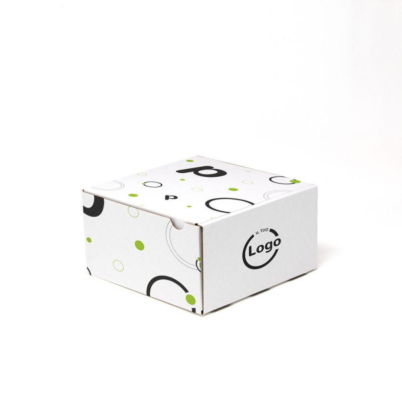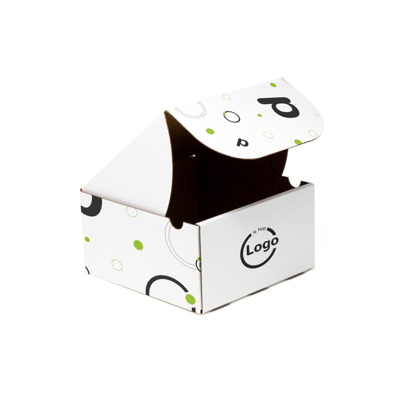 La boîte mod. FRANK 18,5x18,5x10 cm avec ouverture de boîte peut être personnalisé en quadrichromie sur toute la surface (pas de fond complet) et en carton micro-ondes blanc ou havana. Adapté aux produits alimentaires et non alimentaires, il est idéal pour l’expédition.