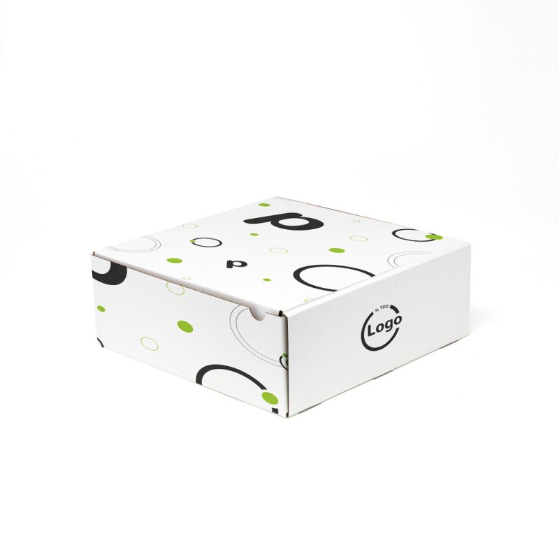 La box mod. FRANK 28x28x9 cm avec ouverture de boîte peut être personnalisé en quadrichromie sur toute la surface (pas de fond plein) et en carton micro-ondes blanc ou havane. Adapté aux produits alimentaires et non alimentaires, il est idéal pour l’expédition.