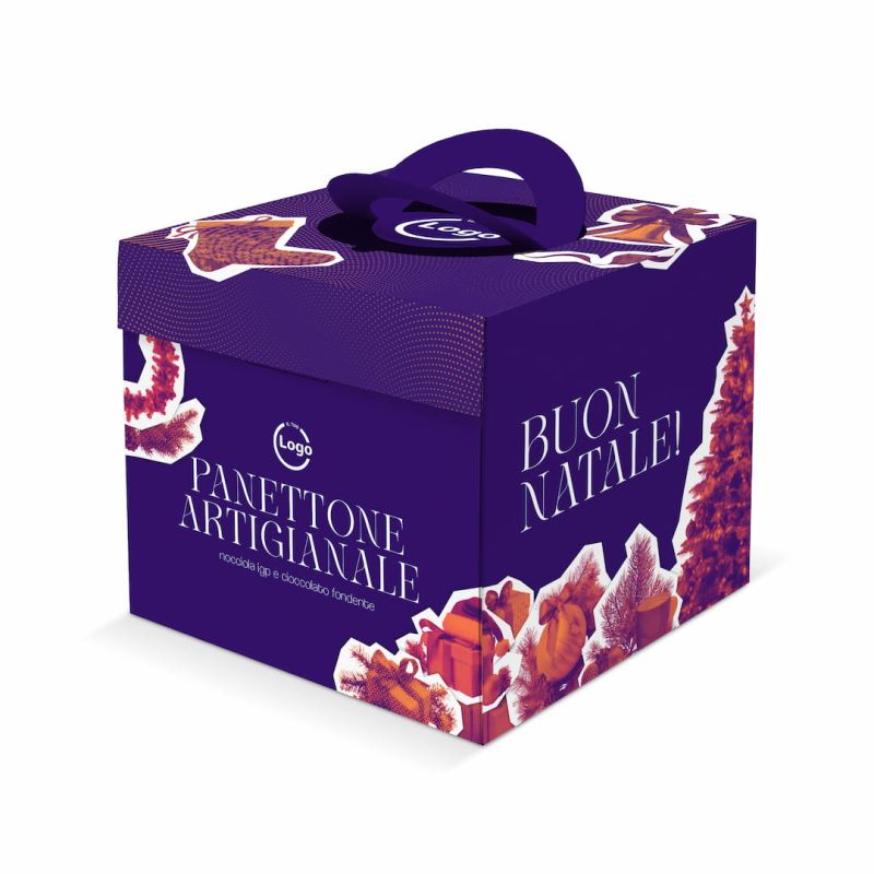 Boîte à fond solide de 1 kg pour panettone, en carton brillant couplé à du cannettè blanc. Impression offset quadrichromie avec vernis de protection, plastisable en brillant ou mat. Des processus fins tels que l’estampage à chaud, la sérigraphie et les graphiques internes personnalisés sont disponibles.