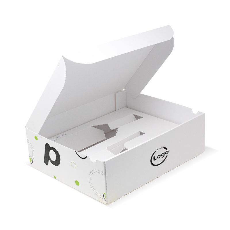 La boîte mod. FRANK 32x26x10 cm avec ouverture de boîte peut être personnalisé en quadrichromie sur toute la surface (pas de fonds unis) et fabriqué en carton micro-ondes blanc ou havane. Adapté aux produits alimentaires et non alimentaires, il est idéal pour l’expédition. Il peut être accessoirisé d’un porte-bouteille de 75 cl et d’un gobelet.