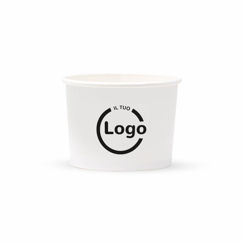 Les gobelets en carton de 200 cc personnalisés jusqu’à 3 couleurs sur une zone prédéfinie, sont parfaits pour servir des glaces, des puddings, des mousses et des desserts. Légers et pratiques, ils peuvent être utilisés dans divers contextes tels que des événements, des bars et des glaciers. Le revêtement PE les rend aptes au contact avec des aliments froids ou à température ambiante, assurant une parfaite conservation du produit. Grâce à leur capacité, ces tasses peuvent être utiles non seulement pour la crème glacée, mais aussi pour servir des apéritifs, des amuse-gueules, des olives, des sauces et des condiments.