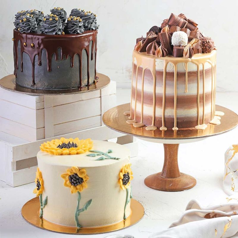 Gâteau rond en carton doré/noir - Personnalisé
