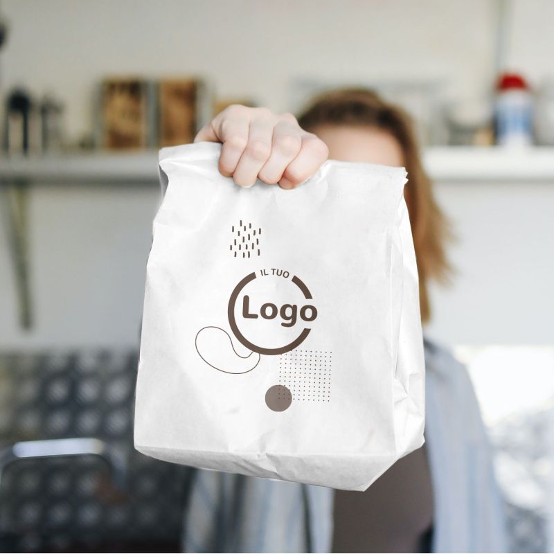Sacchetti in carta antigrasso bianchi o avana con base 19 cm e soffietto 14 cm e altezza selezionabile dal menù a tendina. Ideali per il confezionamento di alimenti da asporto. Personalizzabili con stampa fino a 2 colori su tutta la superficie ad esclusione dei fondi pieni. Il valore dei pezzi per cartone è da intendersi in kg ed è prevista una tolleranza di produzione di +/- 10%