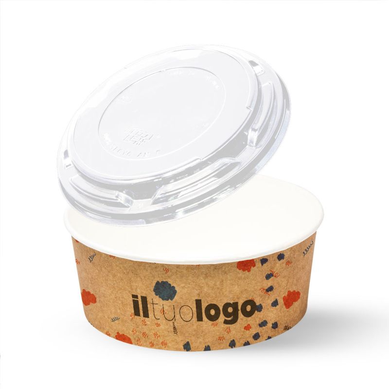 Le ciotole bianche o avana in cartoncino da 1100 ml Ø165x66 (Ø Base 145) sono perfette per servire insalate, poké, noodles, riso, zuppe e molti altri primi o contorni. Realizzate in cartoncino politenato di qualità, queste ciotole offrono un'ampia capacità e una forma comoda per gustare i tuoi piatti preferiti. Puoi personalizzarle con la tua grafica in quadricromia su tutta la superficie a fondo pieno, aggiungendo un tocco di professionalità e promuovendo il tuo brand. Inoltre, le ciotole possono essere accessoriate con il coperchio bombato trasparente in PET, che consente di trasportare il cibo in modo sicuro e pratico, mantenendo la freschezza del contenuto. Che tu gestisca un ristorante, un take-away o un servizio di catering, queste ciotole in cartoncino saranno la scelta ideale per soddisfare le esigenze dei tuoi clienti e presentare i tuoi piatti in modo accattivante.