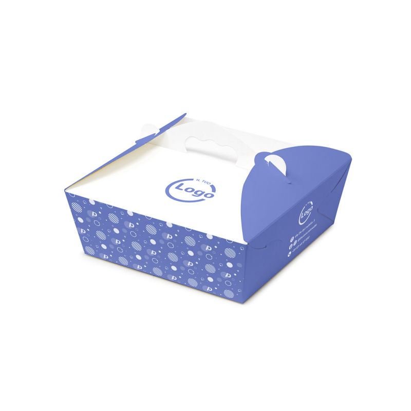 Le scatole mod. NECK in cartoncino politenato con manico da 12x17x7 cm sono la soluzione ideale per presentare e trasportare i tuoi prodotti alimentari. Grazie alla loro robustezza e resistenza all'olio, sono perfette per contenere cibi fritti, unti e secchi, come patatine, pollo fritto, panini, ma anche dolci e prodotti gastronomici. Personalizzabili fino a 4 colori a fondo pieno, queste scatole sono perfette per ristoranti, fast food, pasticcerie e catering. Il manico permette un facile trasporto, mentre il design elegante e minimalista le rende adatte ad ogni occasione.