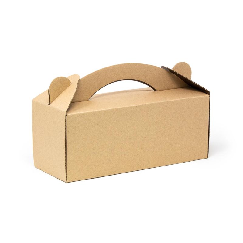 Bauletto con manico, formato 25x10x10 cm, realizzato in cartone microonda KBKBKB vegetale (triplo bianco), resistente e idoneo al contatto alimentare. Proposto in versione neutra senza stampa, è perfetto per chi cerca un packaging semplice, naturale e sostenibile, da utilizzare tal quale oppure da completare con etichette, nastri o sigilli personalizzati. Dotato di manico integrato per un trasporto pratico, è ideale per confezioni artigianali, street food ed eventi. 100% riciclabile.