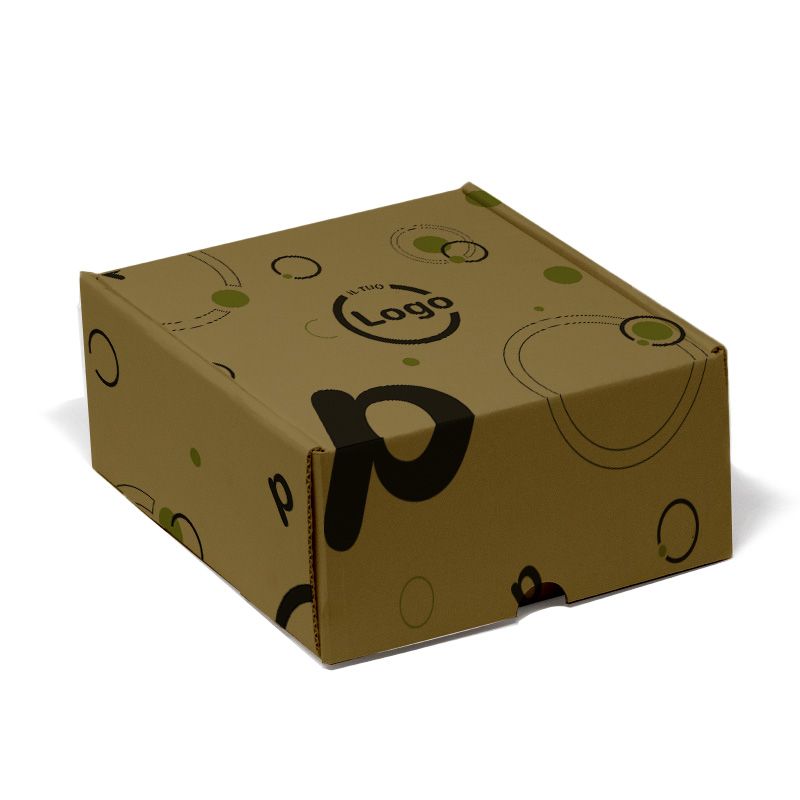 Scatole per spedizioni mod. SHIP 17x14,5x7,5 cm personalizzate fino a 4 colori (no fondi pieni). In cartone microonda vegetale bianco o avana, con chiusura a cerniera frontale, sono ideali per spedizioni di oggetti fragili, elettronici, cosmetici e molto altro ancora.