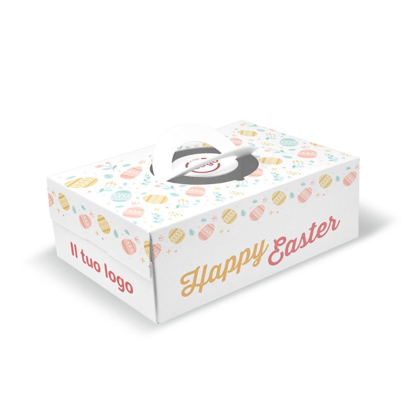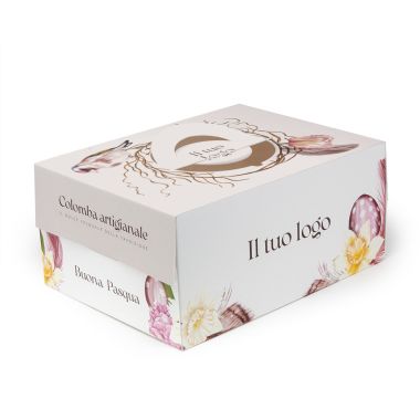 Scatola per colomba artigianale mod. Chic 32,5x24,5x15 cm (dimensioni interne) realizzata in cartoncino microonda vegetale, con apertura laterale, finestra superiore e manico sollevabile. Ideale per confezionare il vostro dolce pasquale o qualsiasi preparato da pasticceria, colombe artigianali o torte, in modo pratico ed elegante. La scatola è personalizzabile in quadricromia su tutta la superficie ad esclusione dei fondi pieni, e adatta per l'uso alimentare.
