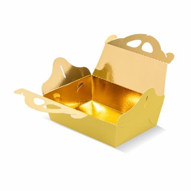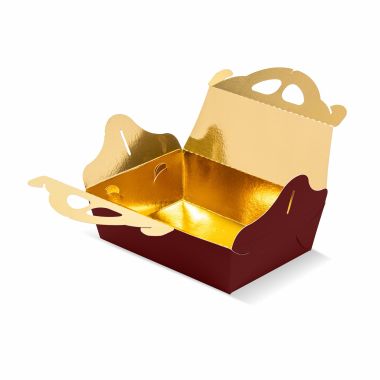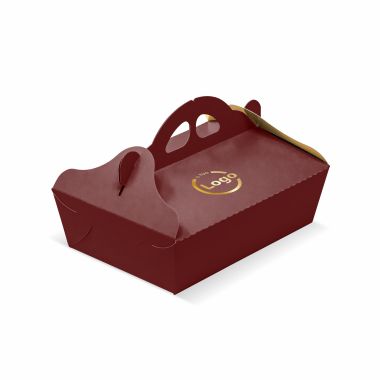Le scatole porta paste mod. SWEET colorate con manico personalizzabili con stampa a caldo ad 1 colore su area predefinita di 13x6 cm sono perfette per presentare dolci e biscotti. Realizzate con materiali di alta qualità, sono disponibili in diverse misure.